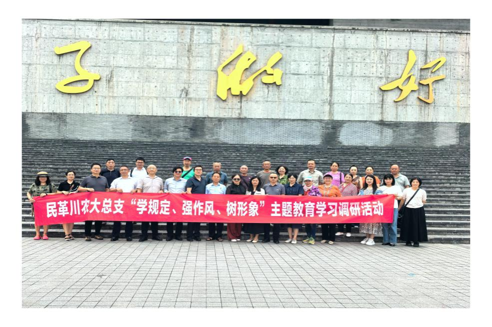 7月7日,为深入学习贯彻“学规定、强作风、树形象”主题教育活动,在民革雅安市委会、学校党委统战部支持指导下,民革四川农业大学总支联合民革雨城区委会赴自贡市荣县开展“学规定、强作风、树形象”主题学习教育活动。民革自贡市委会副主委、荣县总支主委杨泽荣、驻会副主委彭宏虓,民革雅安市委会驻会副主委吴虹、副主委林训,秘书长高东英出席活动,两地30余名民革党员参加。