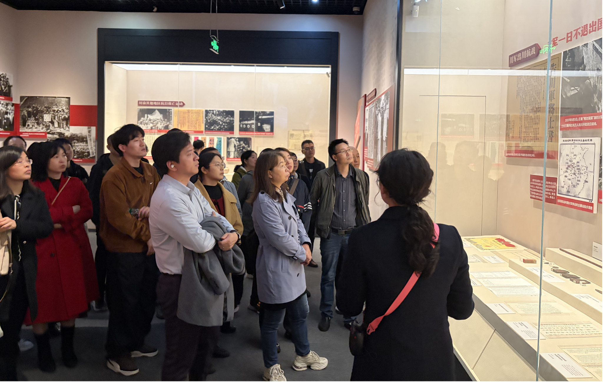 随后,全体人员前往四川博物院参观《伟大胜利川渝贡献——纪念中国人民抗日战争暨世界反法西斯战争胜利80周年专题展》。作为国家级推介的重要纪念活动,该展览由川渝两地多家权威机构联合主办,汇聚49家文博档案机构的306件(套)珍贵藏品。从毛泽东《论持久战》重要文献到川军抗日文物,从见证家国情怀的“死”字旗到记录支援前线的实物史料,五大篇章清晰勾勒出川渝地区作为抗战大后方,在党的领导下凝聚抗日民族统一战线力量,倾尽人力、物力、财力支援全民族抗战的壮阔历史。多媒体互动设计更让参与者直观感受到了川渝儿女不畏牺牲、共赴国难的赤诚,进一步激发了爱国情怀与责任担当。