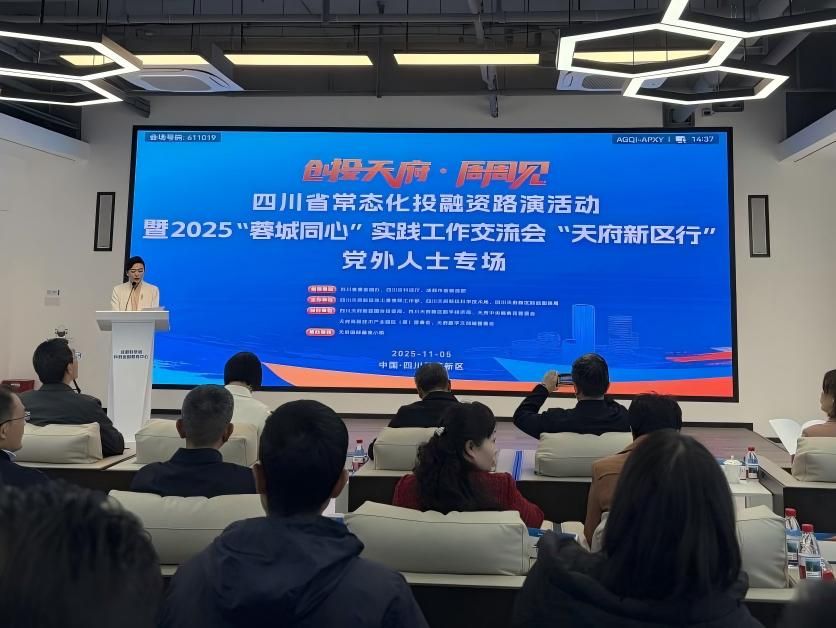 本次活动由四川天府新区党工委党群工作部、四川天府新区科技局、四川天府新区财政国资局等单位联合主办,聚焦“立园满园攻坚年”工作主题,依托“周周有路演、场场有成效”的四川省常态化投融资路演机制,推动全市党外资源与天府新区产业园区深度融合。会上,天府新区相关单位对新区产业布局、发展优势和配套政策进行宣传推介。在随后的项目路演环节,7家高新技术企业围绕生物科技、新材料、环保设备等领域进行展示,并与投融资机构、专家学者深度对接。最后,天府新区党工委党群工作部发布了《“蓉城同心・聚力天府”统一战线资源常态化对接交流机制》。该机制的发布构建了一个高效、务实、开放的合作平台,推动人才、技术、资本、信息、项目等要素在新区充分涌流、高效配置,将统一战线的智力和资源优势转化为推动新区高质量发展的现实动能。